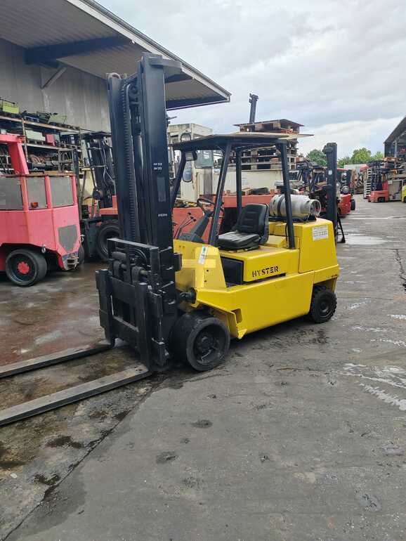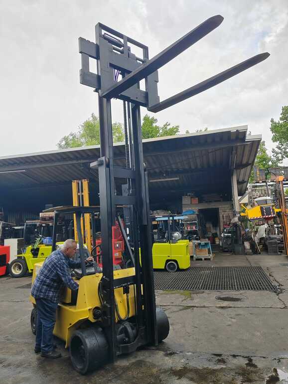 Газовий вилочний навантажувач Hyster S4.50XL 1991 року – надійна та потужна спецтехніка для складських та виробничих робіт. Цей вилочний погрузчик має вантажопідйомність 4500 кг і працює на газовому паливі (LPG), що забезпечує економічність та безпеку під час експлуатації.