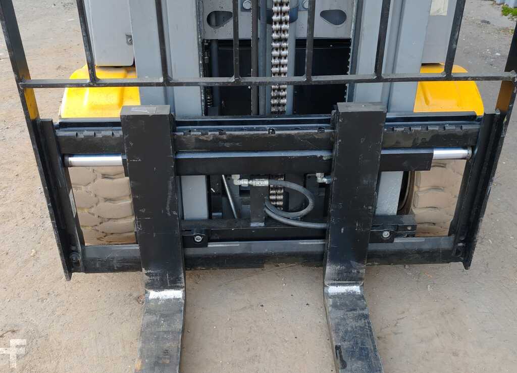 Модель має вантажопідйомність 1600 кг і висоту підйому 5000 мм, триплексну щоглу та електродвигун для точного та швидкого керування. Навантажувач обладнаний бічним зсувом і 3-м клапаном для додаткових навісних механізмів, що підвищує універсальність у роботі зі складськими операціями.